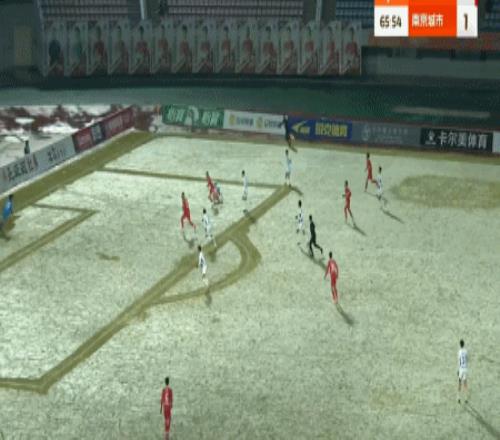 第55分钟,叶道驰低射得分,为南通支云迅速扳平,1-1!
