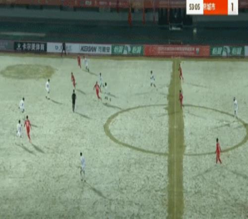 第54分钟,朴世豪搓传中路,黄振飞头球破门,延边龙鼎2-1!