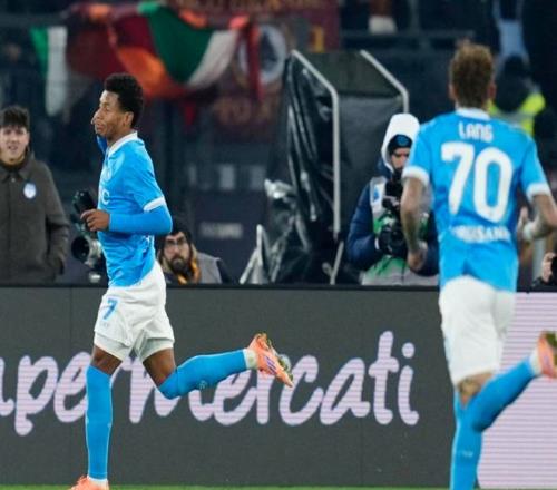 比赛第10分钟,诺阿-朗获得单刀机会。门将冲出禁区,化解险情。这次出击非常关键。8分钟后,迪洛伦佐在禁区右侧凌空抽射,打近角,稍稍偏了一点。第24分钟,诺阿-朗在禁区左侧小角度射门,门将把球扑了出去。第36分钟,罗马丢球了。依靠一次反击机会,内雷斯获得单刀机会,他突入禁区,推射破门!罗马轰然倒下!半场结束,罗马0-1落后。
